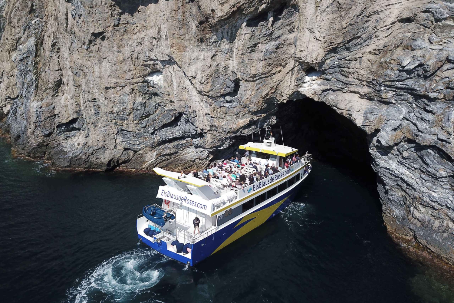 Popłyń katamaranem wzdłuż wybrzeża Costa Brava z Zatoki Róż do Cala Jóncols z widokiem na łódź podwodną.